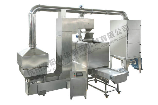 主要特點:立式輸送進料斗、破碎機外包除塵罩與布袋除塵器連接達到除塵要求。除塵裝置由設備配置。除塵罩內有防爆燈,氣帶氣槍用于照明清潔。機組控制系統帶觸摸屏控制面板,操作簡單方便。