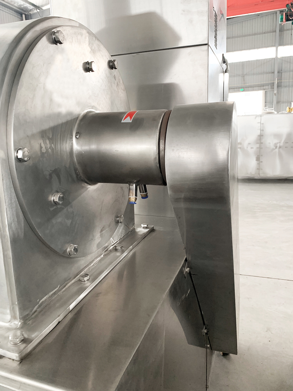 本機結構簡單、堅固、運轉平穩,粉碎效果好、噪音低、振動小、生產過程中無粉塵飛揚,被粉碎物可直接由主機磨腔中排出,粒度大小通過更換不同孔徑篩網而控制。符合GMP要求。