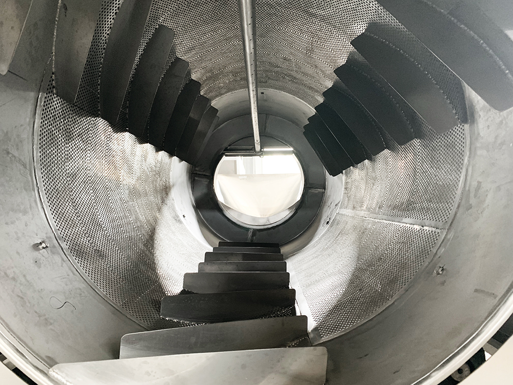 物料由進料斗送入,啟動高壓水泵、轉動筒體,物料在被筒體內螺旋板推進的同時進行漂洗、噴淋和高壓水沖洗。