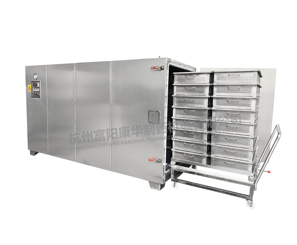 主要特點:箱體上部安裝減壓閥、溫度表,便于觀察和操作控制;方形箱體的有效容積利用率為99%。蒸汽經減壓后直接加熱,箱內升溫快,受熱均勻,節約能源;采用料盤裝料。符合GMP認證要求。